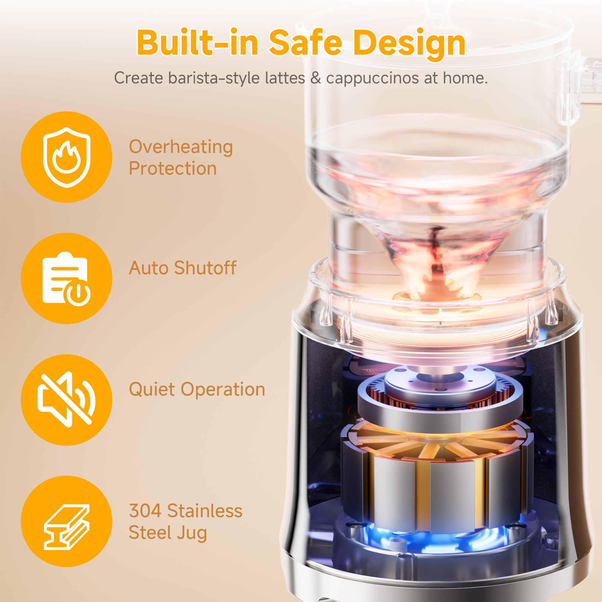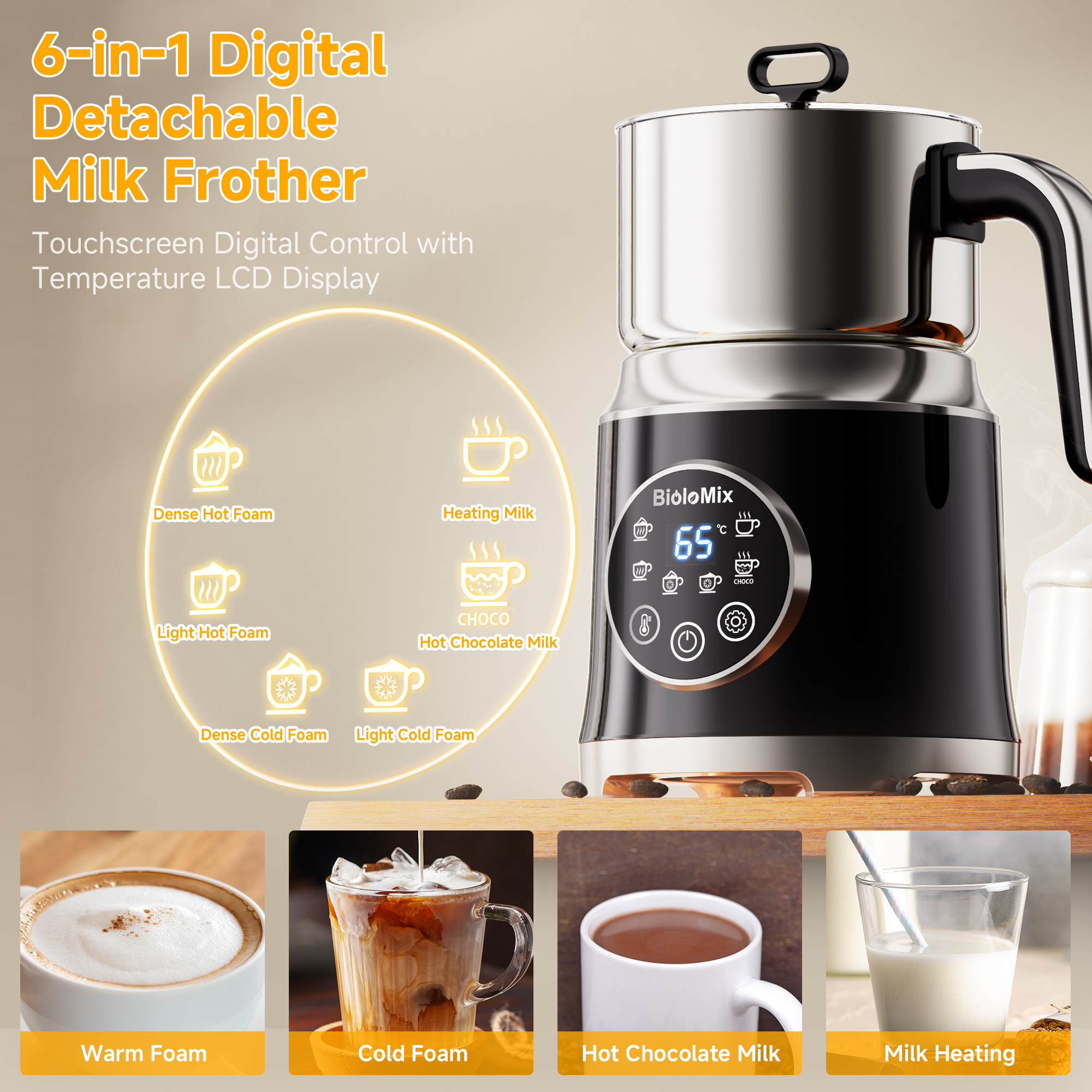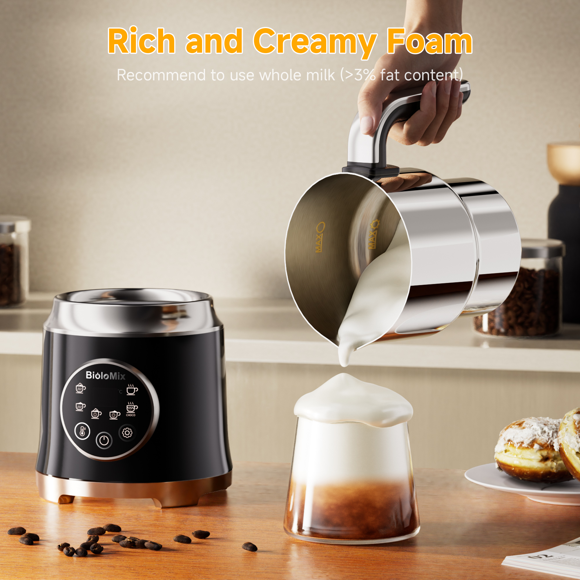 【Safe Design】: Our milk warmer is equipped with temperature control and an automatic shut-off feature that will automatically switch off when the milk foam is ready.